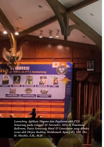 Launching Aplikasi Megono dan Pagilaran oleh PTA Semarang pada tanggal 18 November 2024 di Poncowati Ballroom, Patra Semarang Hotel & Convention yang dibuka resmi oleh Dirjen Badilag Mahkamah Agung RI, YM. Drs. H. Muchlis, S.H., M.H 104