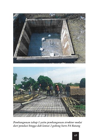 Pembangunan tahap 1 yaitu pembangunan struktur mulai dari pondasi hingga dak lantai 2 gedung baru PA Batang 49