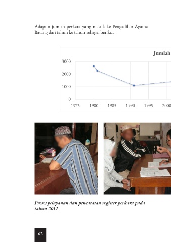 Adapun jumlah perkara yang masuk ke Pengadilan Agama Batang dari tahun ke tahun sebagai berikut Proses pelayanan dan pencatatan register perkara pada tahun 2011 62
