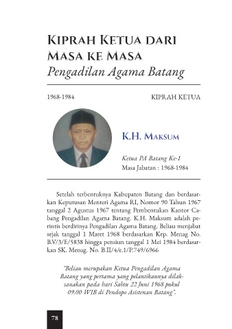 bang Pengadilan Agama Batang. K.H. Maksum adalah pe-